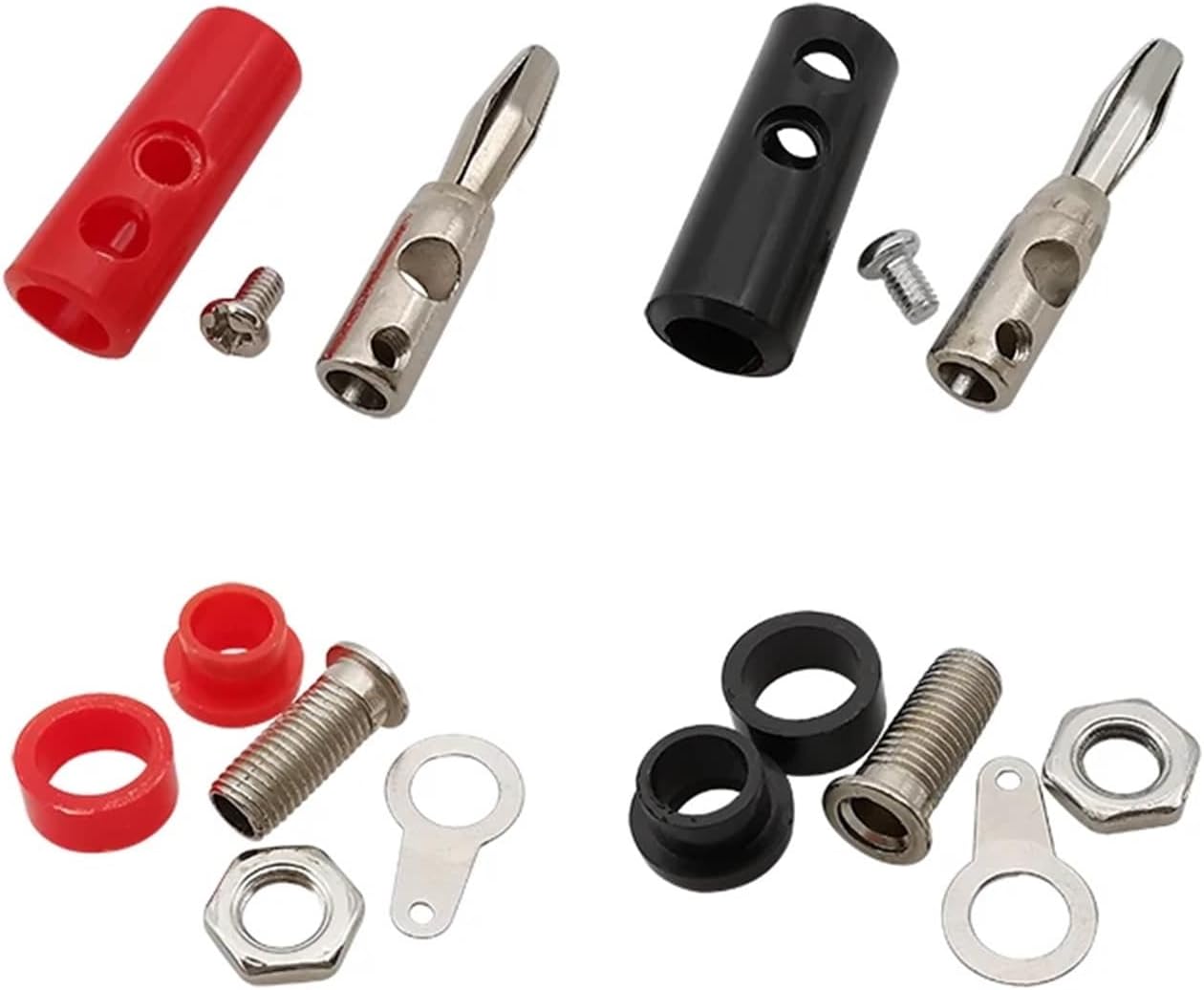 ConnectorsDescription4mm Banana Socket ConnectorColor: Red, Black, SilverConnector 1: 4mm Banana Connector 2: 4mm Banana Binding Post SocketGender: Male, FemaleMaterial: Zinc Alloy, Iron, ABSPackage: 10Pair = 5Pair Red + 5Pair Black