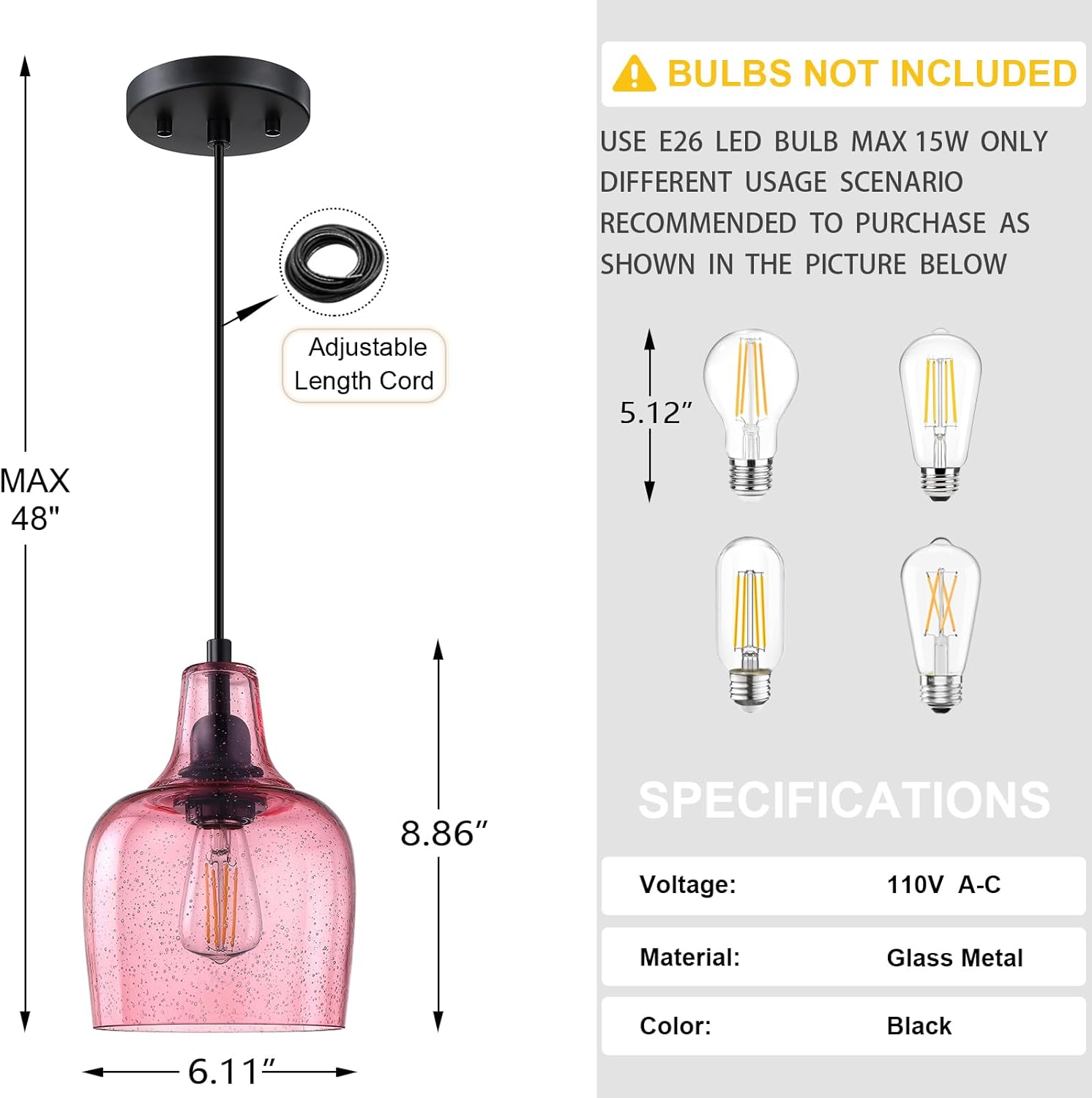 2 Pack 1 Light Hanging Indoor Kitchen Island Pendant Light 7