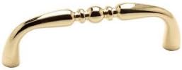 This Polished Brass Cabinet Pull is from the Salem Collection by Berenson Hardware. Made from zinc diecast. Length: 3-5/16" Height: 1-1/8" Width: 5/16" Base: 3/8" Tap: 8-32 Hole Spacing: 3"