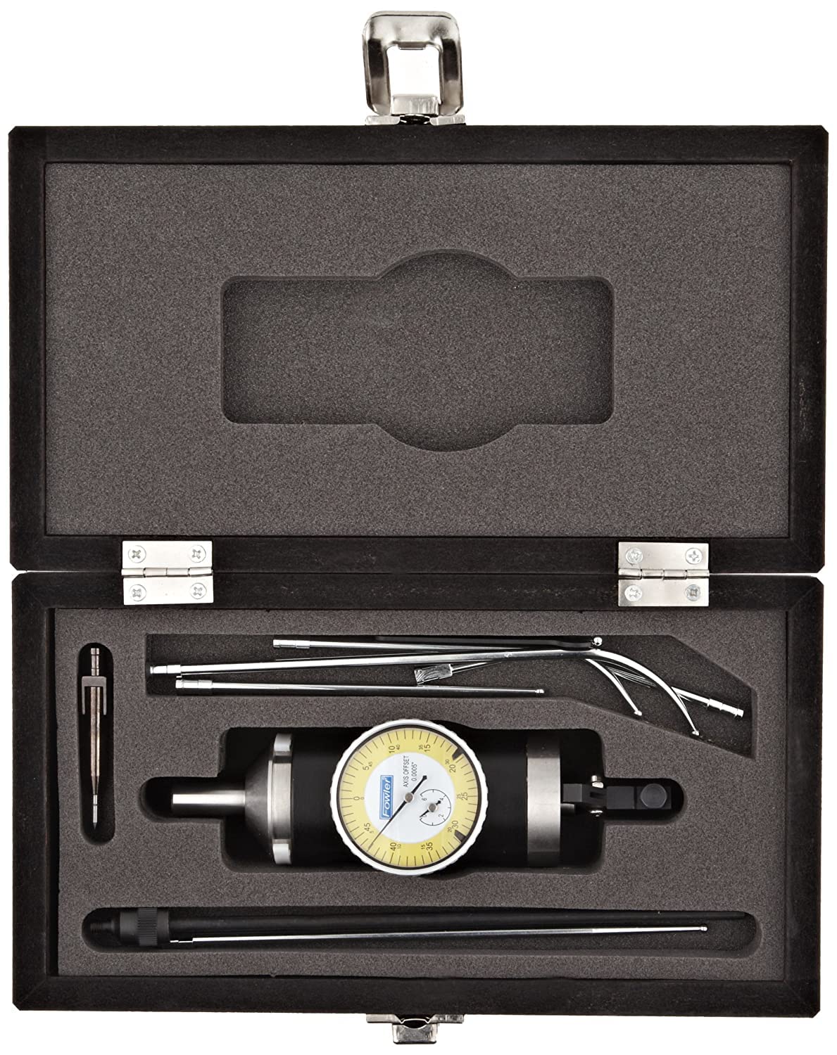 The Fowler High Precision COAX-2D Dial Test Indicator with its 0.0005" graduations and 0-50 continuous reading dial features 0.250" offset axis measuring range and 0.0005" graduations for taking direct readings. Three internal and three external feelers and a center point feeler have 0.125" ball diameter, a locating accuracy of ±0.0002" of true center and provide a wide measuring range of 0-12" . The dial face remains stationary during spindle rotation up to 800 RPs with a full 1-year warranty offered by Fowler High Precision. Fowler, an American company, manufactures premium inspection and measuring instruments such as electronic indicators, calipers, bore gages, and micrometers. The company, founded in 1946, is headquartered in Canton, MA.