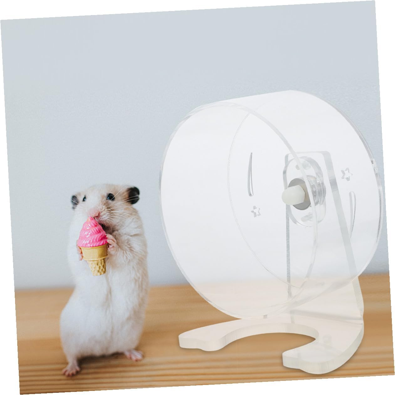 Package List 1 x hamster running wheel Characteristics -Simple installation: designed to fit a wide range of pet cages, this wheel is easy to assemble, providing a convenient exercise option for your small pet silent hamster exercise wheel -Silent functionality: engineered for quiet operation, this wheel minimizes noise, making it suitable for any room in your home, including bedrooms quiet hamster wheel -Sturdy and reliable: constructed with durable materials, this wheel resists wear and tear, ensuring long term use without compromising its clarity -Color:Transparent -Supports healthy movement: the spacious interior design encourages natural running and spinning, helping your pet stay fit and avoid weight-related issues running wheel for gerbils -Clear observation: the transparent design enhances visibility, allowing you to watch your pet's activities in detail and enjoy their energetic routines small animal exercise wheel -Product Info: Pet hamster running wheel -Material:Acrylic -Size:28.00X22.00X12.70cm/11.00X8.65X4.99inGoods Descriptionhamster silent runner for fostering a healthy , it keeps pets entertained while supporting their physical development.hamster wheel Its lightweight yet durable design makes it easy to handle and clean.gerbil wheel This crystal-clear hamster running wheel combines style and practicality, offering a silent and safe exercise option for small animals