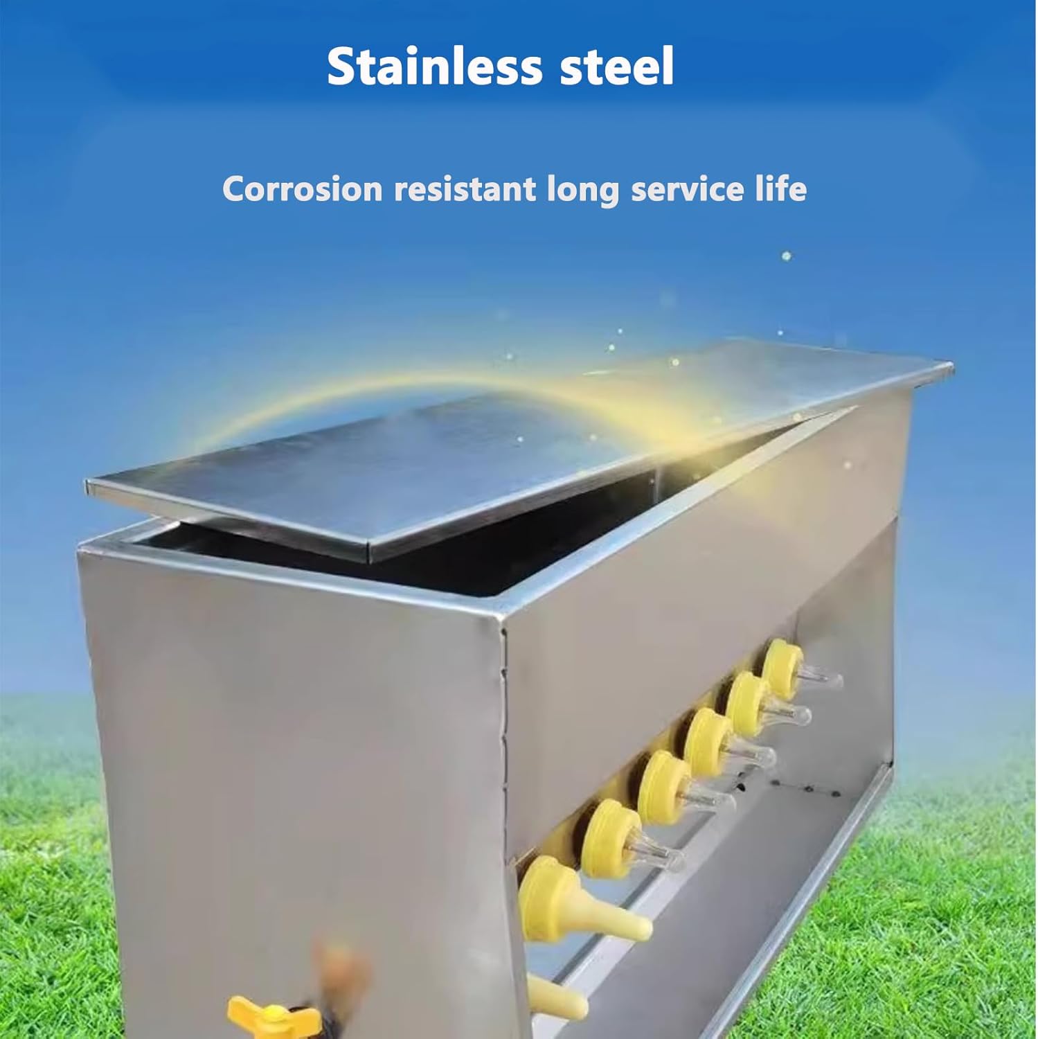 Piglet Feeder 10 Heads 14 Heads Double-Sided Intelligent Constant Temperature Fully Automatic Piglet Lactation Milking Machine with Sound Pig Milk FeederCan be used to feed pigs, cattle, sheep and other small animalsFeatures:Sufficient number of nipples, 5/7 nipples on each side, can accommodate 10/14 piglets;Automatic stirring system to prevent sedimentation and fully absorb liquid nutrients;Sound source simulation can effectively summon piglets to eat, as careful as a sow;Control panel, precise temperature control, easy to operateSpecifications:Product material: stainless steelTemperature control range: 0-100℃Temperature measurement range: 0.2%FSPower: 200WPacking list:Piglet feeder x1