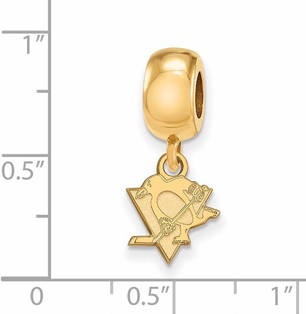 This alluring Sterling Silver Gp Nhl Logoart Pittsburgh Penguins Extra Small Dangle Bead Charm, crafted in Gold Plated Silver . This design measures 9.00 mm wide, 23.00 mm long.