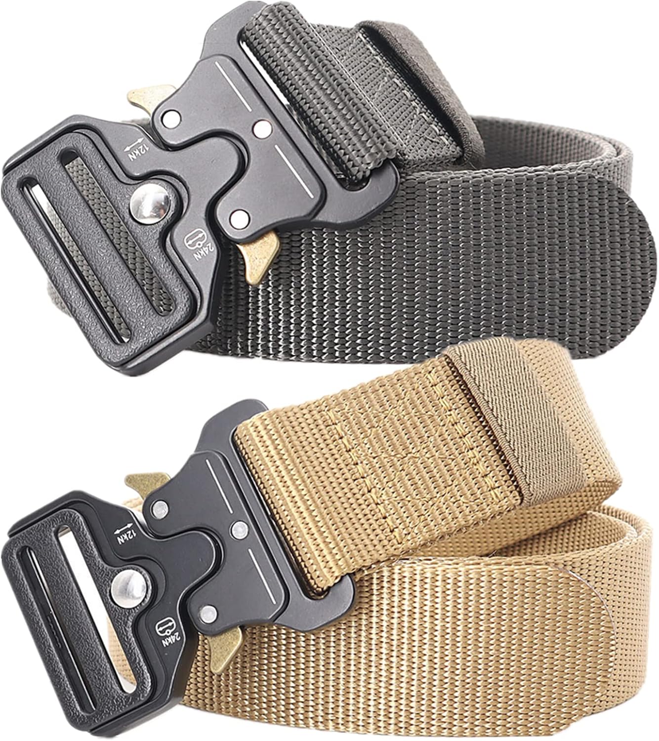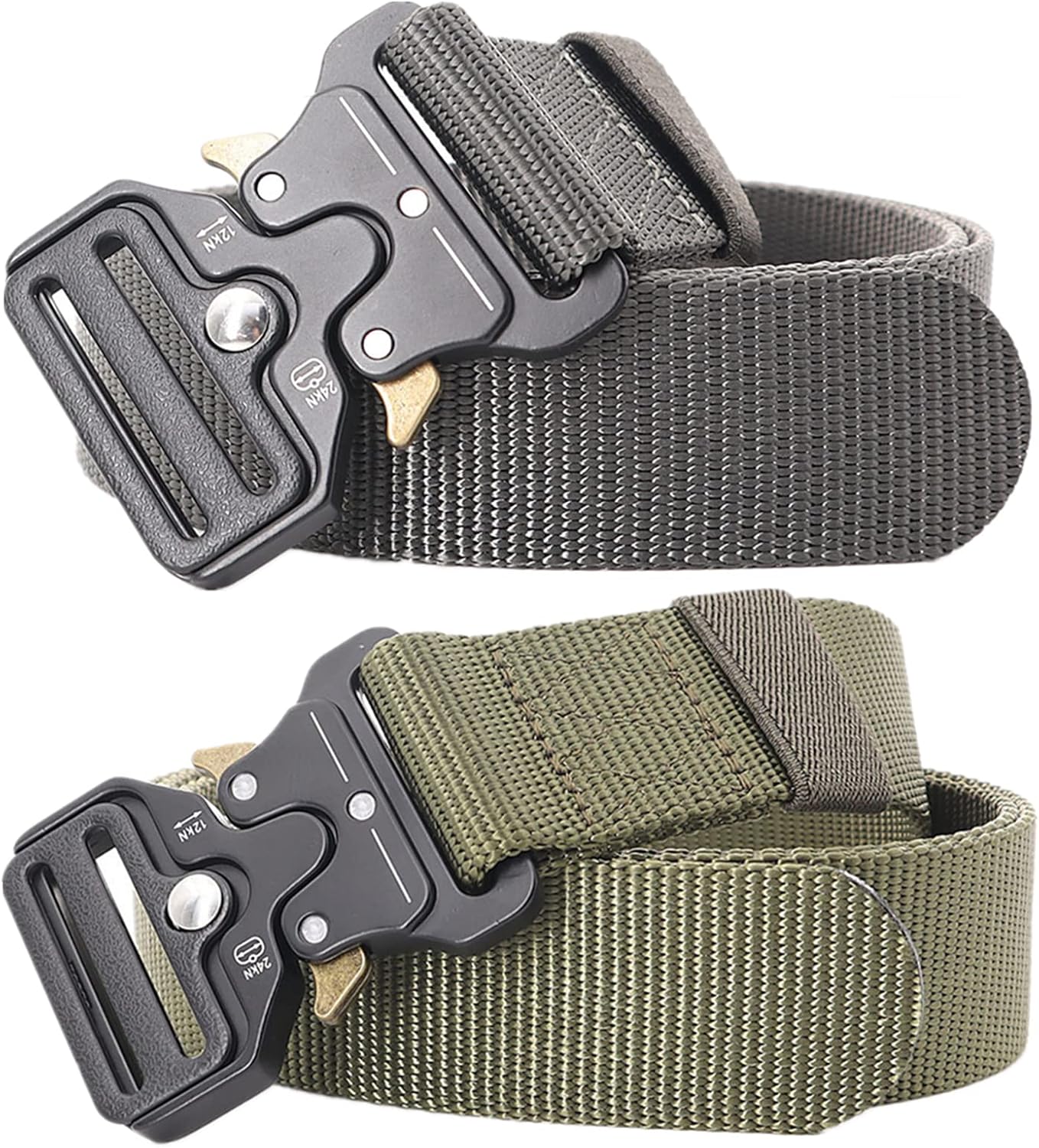 Belt Main Material: nylon strap + alloy buckle Strap width: 1.5" (3.8cm) Belt length: 125cm(49"), 135cm(53"), 145cm(57"), 155cm(61"), 165cm(65") Buckle Size: 6.5 x 5cm(L x W) Tactical belts for mountaineering Keep yourself good for outdoor activities and keep yourself flat under the waist belt of the backpack. It is a good choice for daily hiking and mountaineering. Tactical Duty Belt for Military Run perfectly with a tactical combat belt and for tactical training. You don't have to worry if a buckle runs through the forest. Suits for many outdoor activities Durable and comfortable belt for your hunting equipment. The tactical locking remains secure in any case. Package include: 2 * belts Note: 1. Manual measurement, there may be 1-3cm error 2. The display effect is different, there may be slight color difference between the product and the picture, please refer to the actual product.