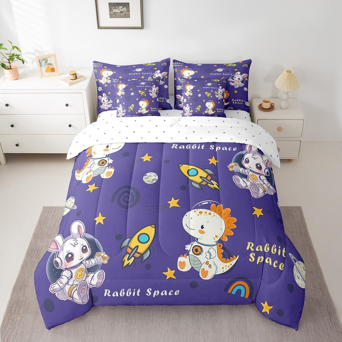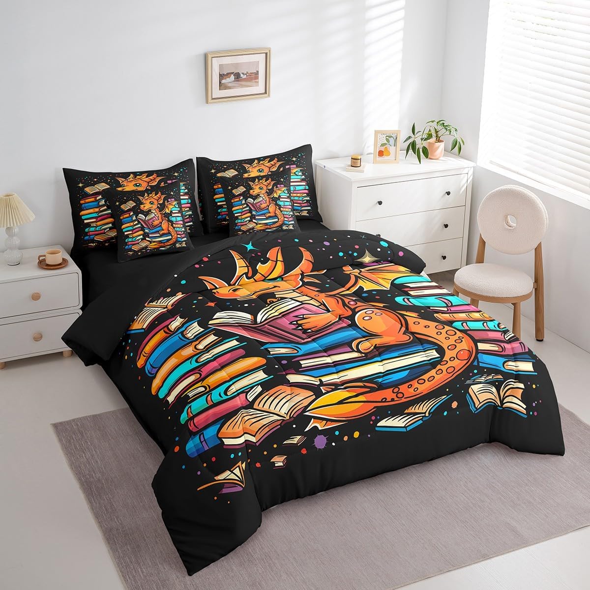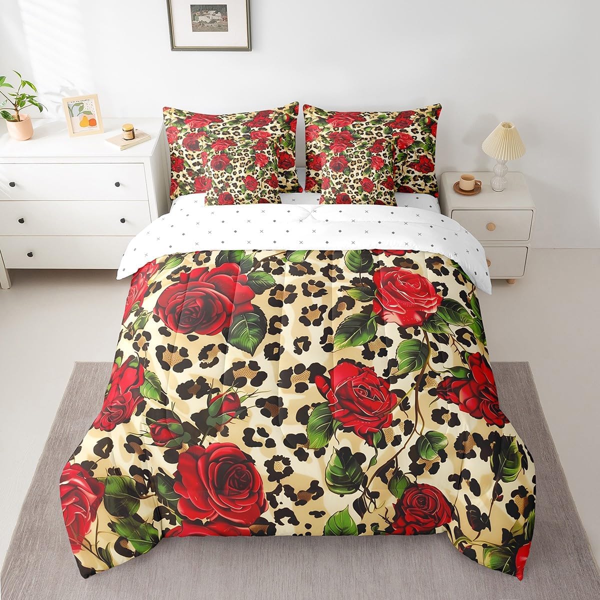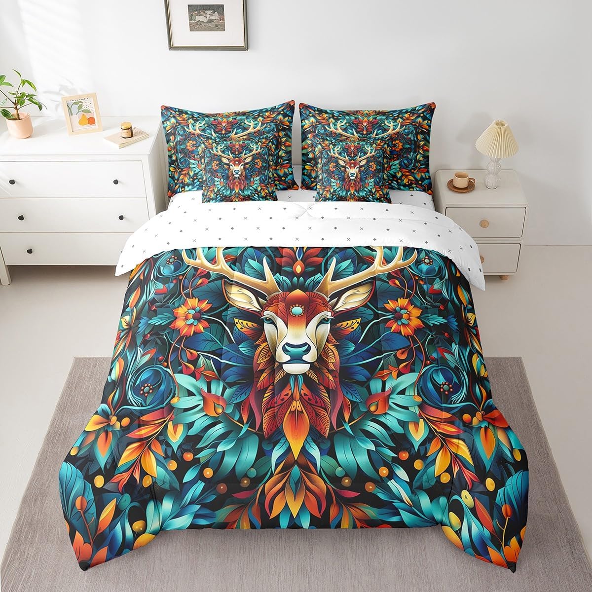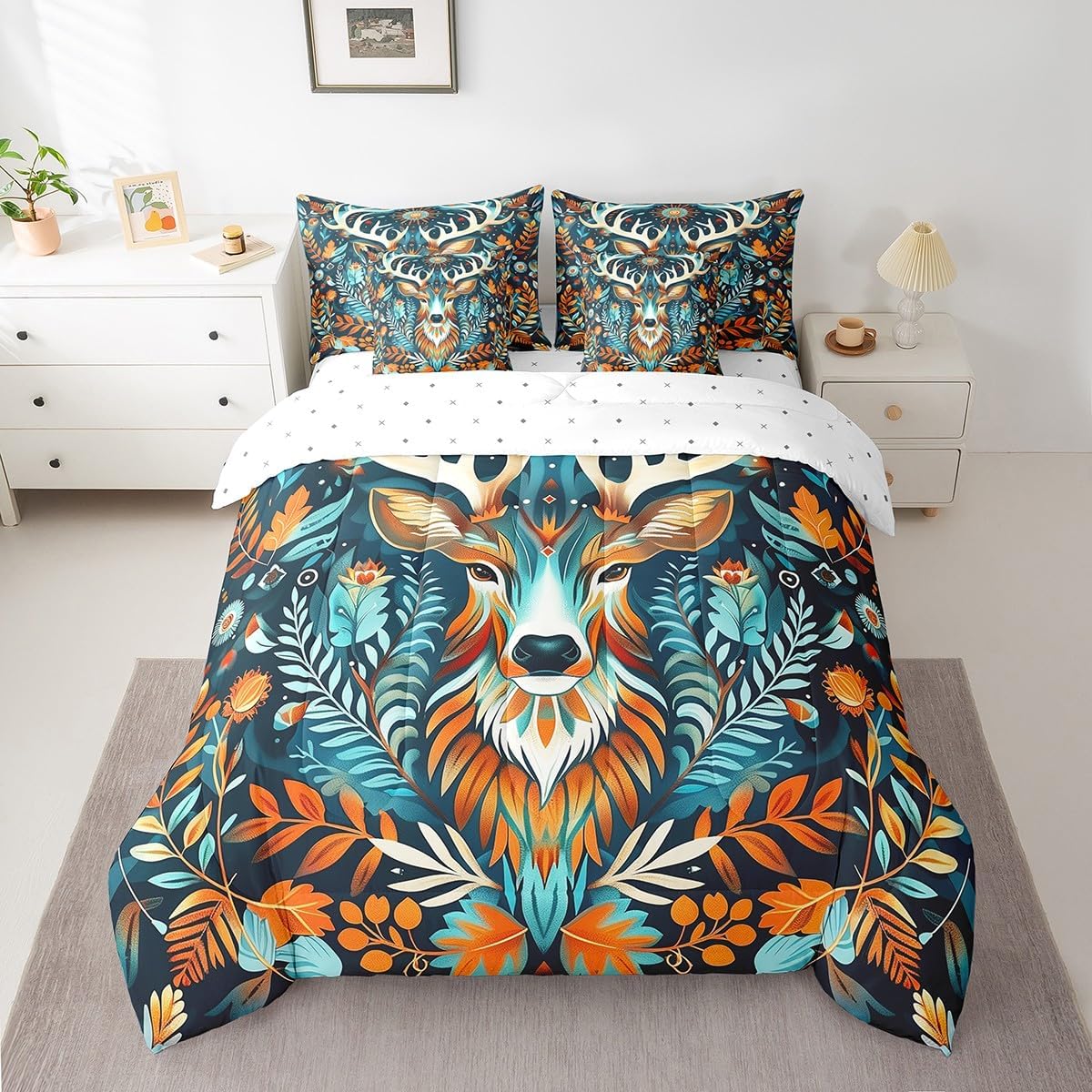 Welcome to our store! We have specialized in home textile for many years.We are contribute to provide the best customer service and products.If you have any questions,please contact us anytime.We'll try our best to answer your questions and solve your problems. Size information: Twin size: 1 Down Comforter (68"W x 90"L) + 1 Fitted Sheet (39"W x 75"L x 16"H) + 1 Flat Sheet (67"W x 96"L) + 2 Pillowcases (20" x 30") + 2 Throw Pillow Covers (18" x 18"). Full size: 1 Down Comforter (79"W x 90"L) + 1 Fitted Sheet (55"W x 75"L x 16"H) + 1 Flat Sheet (81"W x 96"L) + 2 Pillowcases (20" x 30") + 2 Throw Pillow Covers (18" x 18"). Queen size: 1 Comforter (90"W x 90"L) + 1 Fitted Sheet (60"W x 80"L x 16"H) + 1 Flat Sheet (90"W x 102"L) + 2 Pillowcases (20" x 30") + 2 Throw Pillow Covers (18" x 18"). King size: 1 Comforter (104"W x 90"L) + 1 Fitted Sheet (78"W x 80"L x 16"H) + 1 Flat Sheet (90"W x 106"L) + 2 Pillowcases (20" x 36") + 2 Throw Pillow Covers (18" x 18"). Deep Pocket: Our 100% microfiber fitted sheet sets ,the deep pocket allows you to cover your mattress easily when needed. Simple and Convenient. Useful and practical: A luxurious product for homes,dorm rooms,hotels,guest rooms.Practical to use for being polyester, feels like cotton which is super soft and breathable.No chemicals used, no dye substance harming the health of you or your family. Unique design: Vivid Colors won't fade thanks to new 3D digital printing methods. These unique designs match well with various color palettes of your rugs, curtains, headboard, furniture, and all other decor accessories. Note: The bedding set and pillow shams are only printed on the front,and the back is white. Washing instructions: Machine wash separately in cold water,hang dry, do not bleach.