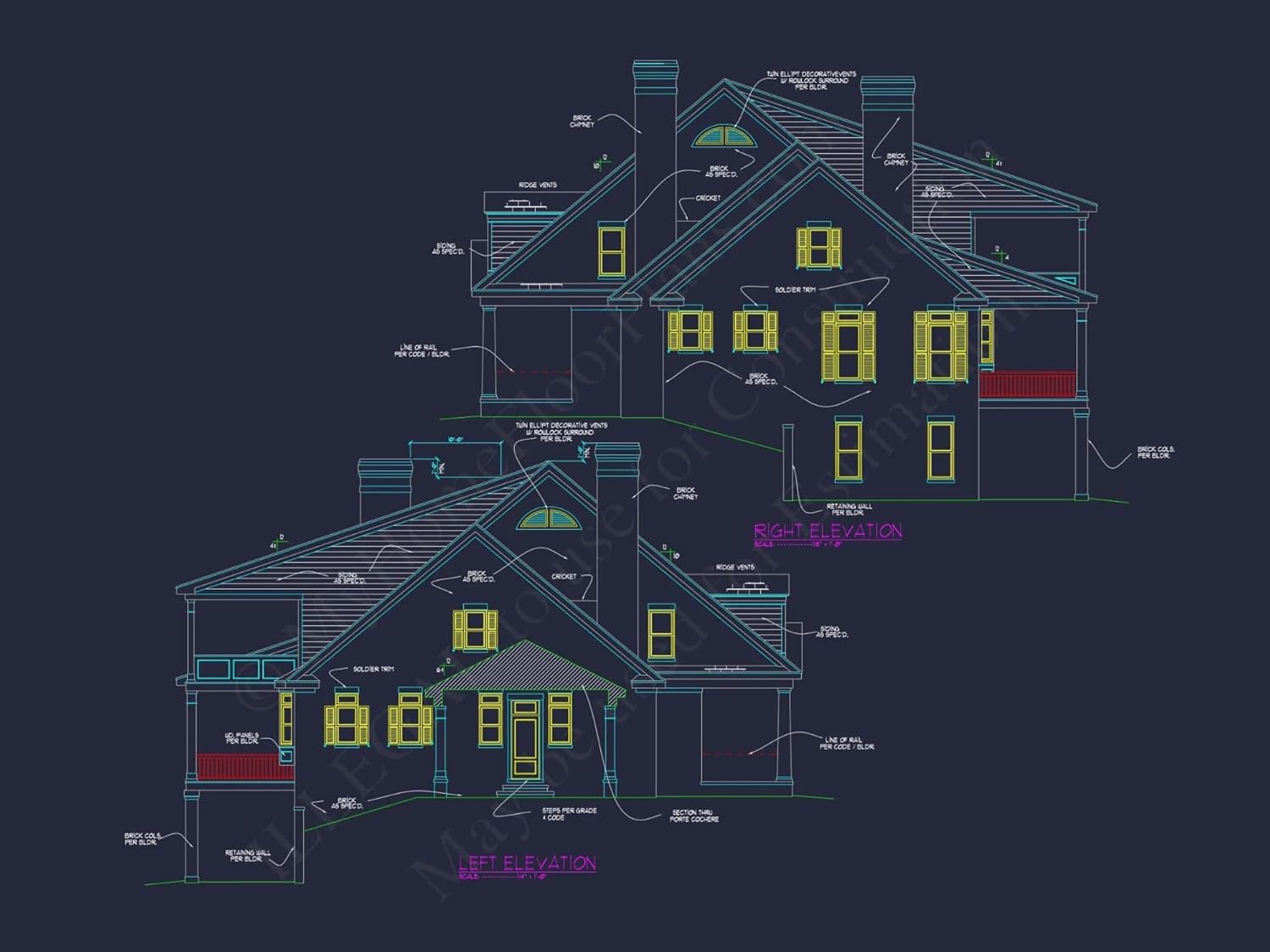 Width: 118′-0″Depth: 70′-10″Htd SF: 5,884Unhtd SF: 1,904Luxury 2-Story House Plan with Southern-Inspired ArchitectureExplore this elegant 5-bedroom, 4-bath luxury home plan with 5,884 heated sq. ft., detailed CAD blueprints, a spacious basement, and timeless architectural features.This luxury house plan offers a perfect mix of grandeur and functionality. Designed for modern living with classic Southern charm, this home layout includes every amenity a family needs to live and entertain in style.Key Features of the Home PlanLiving Areas - Heated & UnheatedHeated area: 5,884 sq. ft. over two stories plus a finished basement.Unheated extras: Spacious 3-car garage, covered porches, and rear patio.Bedrooms & Bathrooms5 total bedrooms including a luxurious first-floor Owner Suite with a spa-like bathroom and walk-in closet (WIC).4 full bathrooms, well-distributed for ease, privacy, and guest comfort.Interior HighlightsOpen floor plan that connects the living room, dining area, and kitchen seamlessly. Explore more open layouts.Kitchen island plus a butler's pantry and walk-in pantry for maximum functionality.Fireplace creates warmth and ambiance in the family room. View fireplace house plans.Study/Office ideal for remote work or quiet reading space.Bonus Room adaptable for hobbies, gaming, or additional guests.Garage & Storage DetailsGarage Bays: 3-car garage with side-entry access.Garage Type: Detached style for expanded driveway flexibility.Storage: Features walk-in closets (WIC), a mudroom, and extra utility areas in the basement.Outdoor Living FeaturesCovered front porch for a classic entry experience and relaxing outdoor evenings.Rear covered patio perfect for hosting or enjoying quiet moments with nature.Brick and shake exterior finishes add Southern elegance and low-maintenance appeal.Architectural Style: Georgian & Colonial RevivalThis design blends Southern architecture