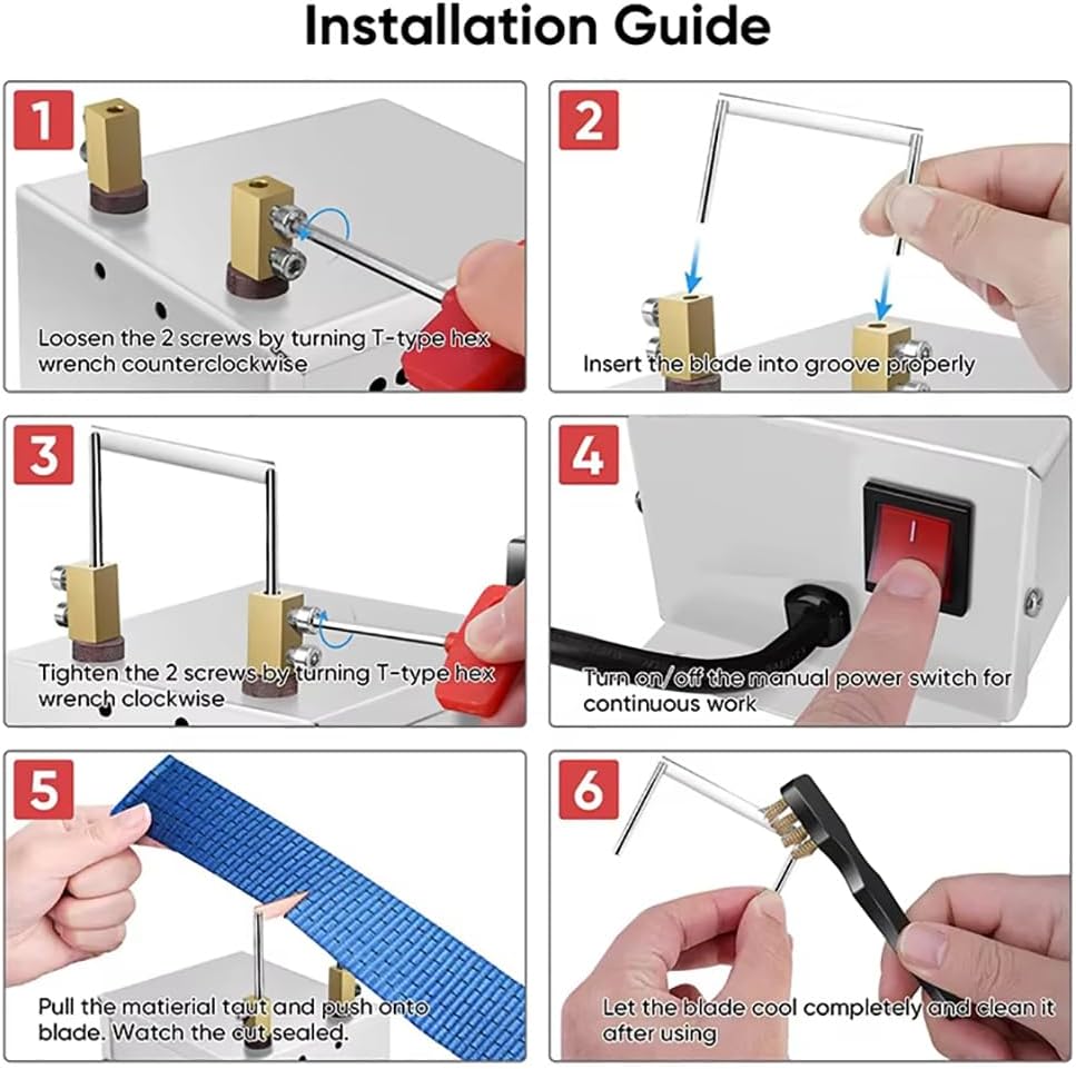 Introducing our advanced Ribbon Cutting Machine, expertly designed for cutting through synthetic fabrics and ropes with ease. This versatile tool efficiently handles materials such as canvas, synthetic fabric, cloth, rope, and cord. Utilizing a hot knife system, the blade reaches temperatures up to 932°F (500°C), ensuring quick and precise cuts. We strongly recommend reviewing and understanding the operating instructions prior to use for optimal safety and performance. Specifications: Name: Ribbon Cutting Machine Power: 30 W Blade Temperature: Heats to 500°C in seconds Power Cord Length: 2.0 m Net Weight: 1.7 kg Condition: New Unit Count: 1 Standard Product ID: 1 Package Includes: Ribbon Cutting Machine x1 Small Wrench x1 Copper Wire Brush x1 Product Manual x1