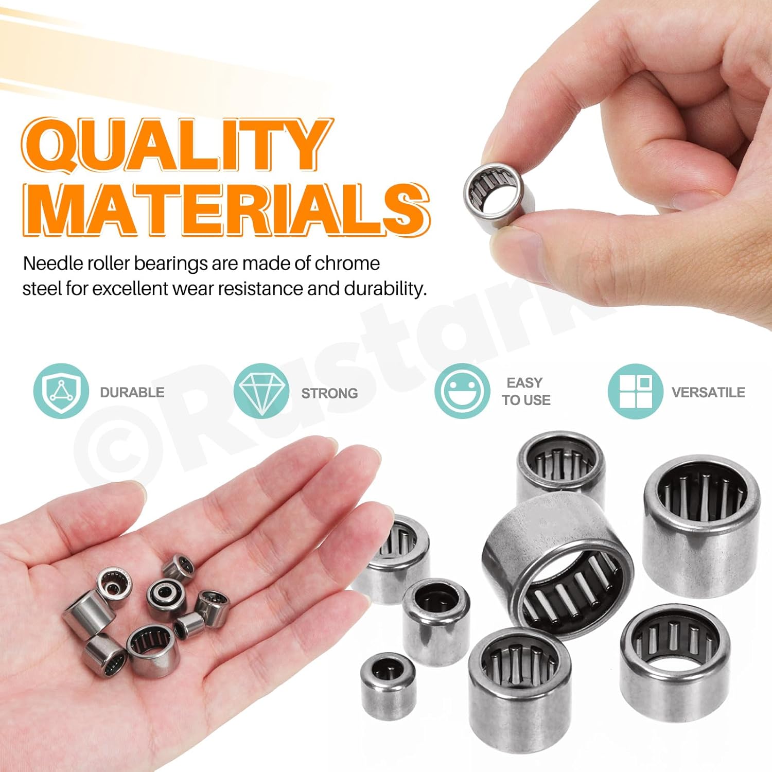 ★Rustark 8 Sizes Needle Roller Bearings Assortment Kit Chrome Steel Open End Needle Bearing Drawn Cup Bearing for Machinery Automotive Agricultural equipment ★ WHY CHOOSE US? ❤You'll receive a 32pcs 8 sizes needle roller bearings assortment kit. Sufficient quantity and rich sizes can meet your different needs in daily life. ❤These needle roller bearings are made of chrome steel which are corrosion-resistant, wear resistant, not easy to break, strong and durable with long-term service life. ❤Suitable for applications where the installation space is restricted and the housing bore can be used as a raceway, such as transmissions, gearboxes, valve components, etc. ❤The needle roller bearings in various sizes are packed neatly in a separate compartment in a transparent storage box, making it easy to get the right size you need. ★Specifications: ✯Product Type: Needle Roller Bearings Assortment Kit ✯Quantity: 32Pcs ✯Material: Chrome steel ✯Color: Silver ★What You Get: 4pcs------3x6.5x6MM/0.12x0.25x0.24Inch 4pcs------4x8x8MM/0.16x0.31x0.31Inch 4pcs------6x10x7MM/0.24x0.39x0.28Inch 4pcs------7x11x9MM/0.28x0.43x0.35Inch 4pcs------8x12x10MM/0.31x0.47x0.39Inch 4pcs------9x13x8MM/0.35x0.51x0.31Inch 4pcs------10x14x12MM/0.39x0.55x0.47Inch 4pcs------12x16x10MM/0.47x0.63x0.39Inch Total: 32Pcs ❤Warm Tips: -If you come across any questions or problems, please feel free to come to us. We will solve it for you as soon as possible!