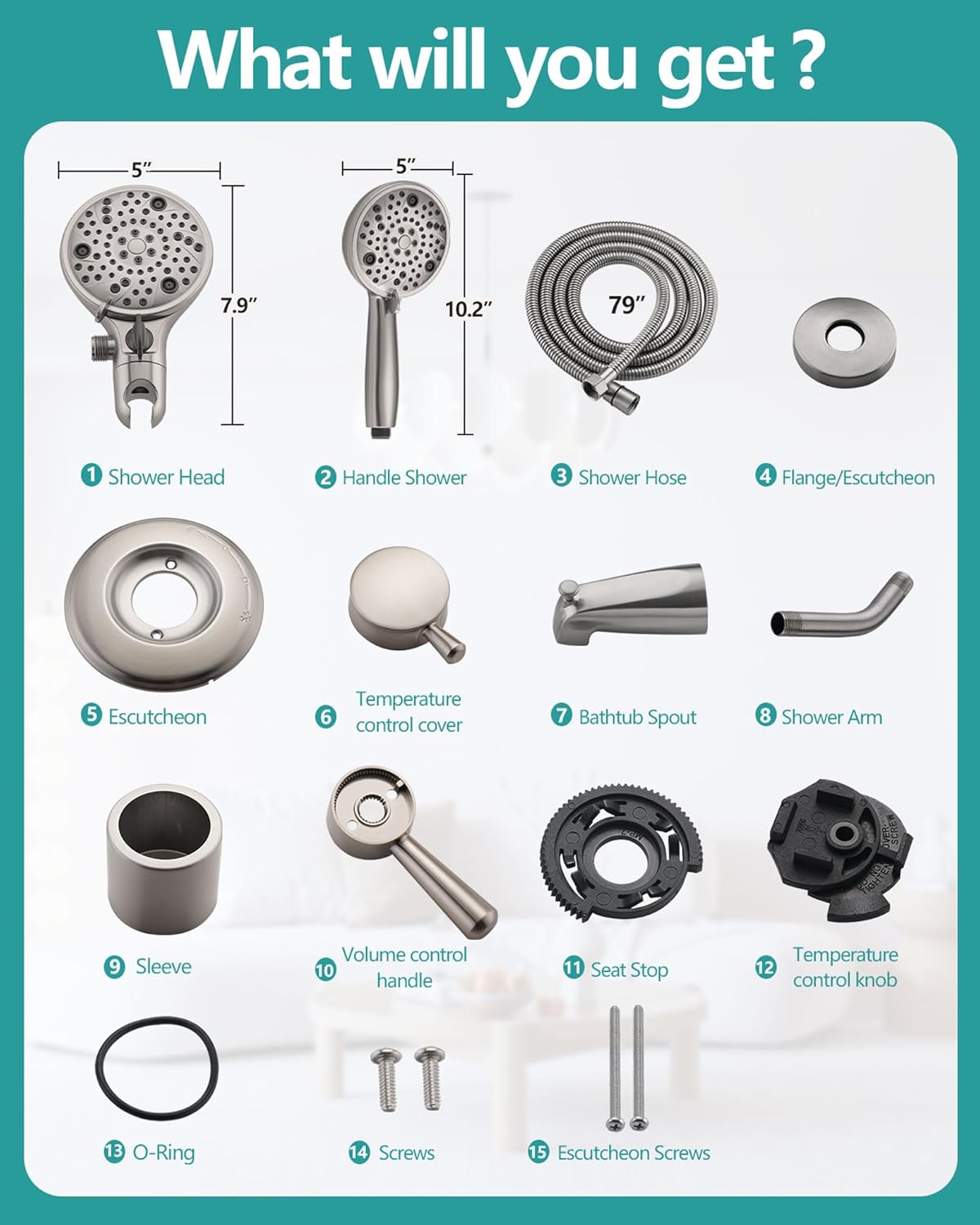 | Included Components | Trim Kit, Shower Head, Shower Arm with Flange, Tub Spout |