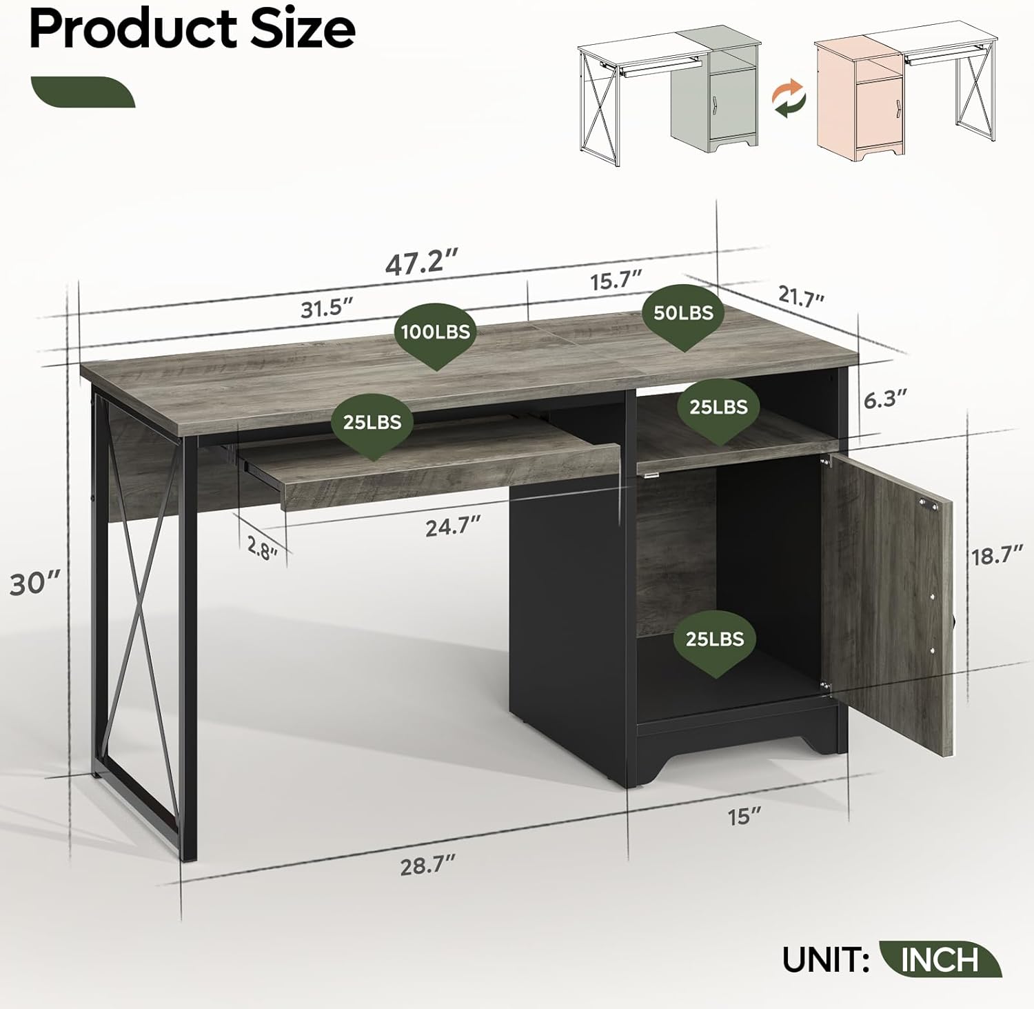 | Included Components | Computer desk, instruction manual, mounting hardware, sliding keyboard tray |