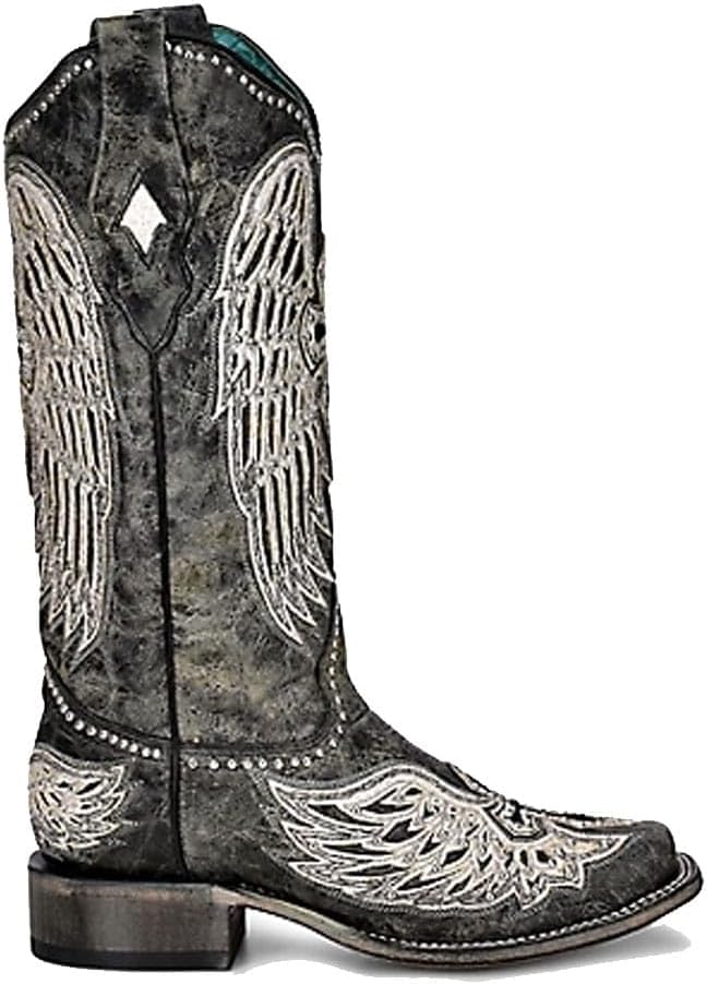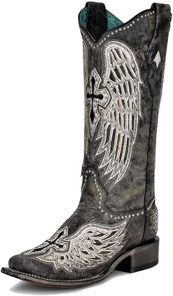 Flaunt a fierce cowboy look wearing the Corral Boots A4243 and take every step in style. Man-made upper. Man-made lining and comfortable footbed. Square toe. Mid-calf length. Slide closure. Side pull tabs for easy donning and doffing. Intricate statement detailing allover. Man-made outsole. Slight heel.