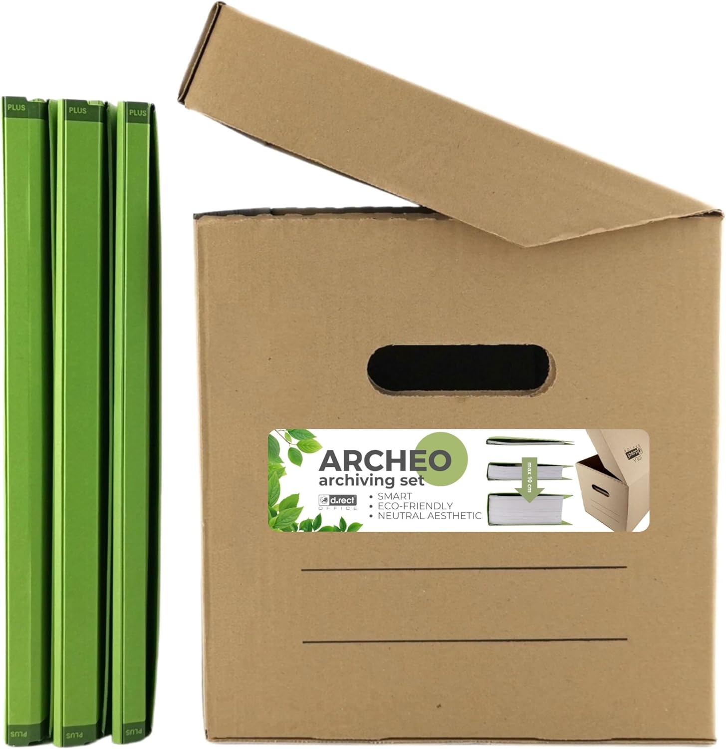 The ARCHEO set offers a practical solution for stylish and environmentally friendly archiving of important documents both in the office and at home. Thanks to the adaptable folders and the writable box, it ensures order and saves space. This makes it an ideal choice for anyone who values organisation and sustainability.