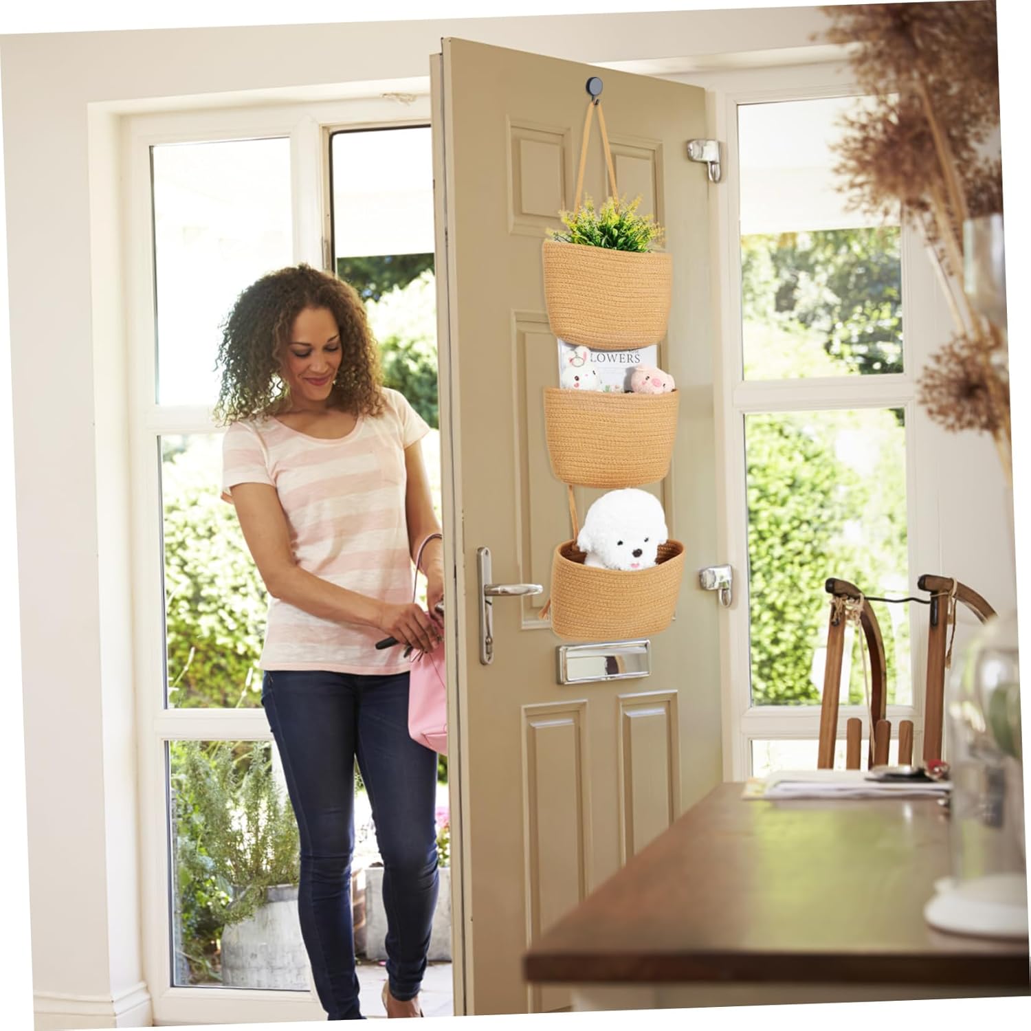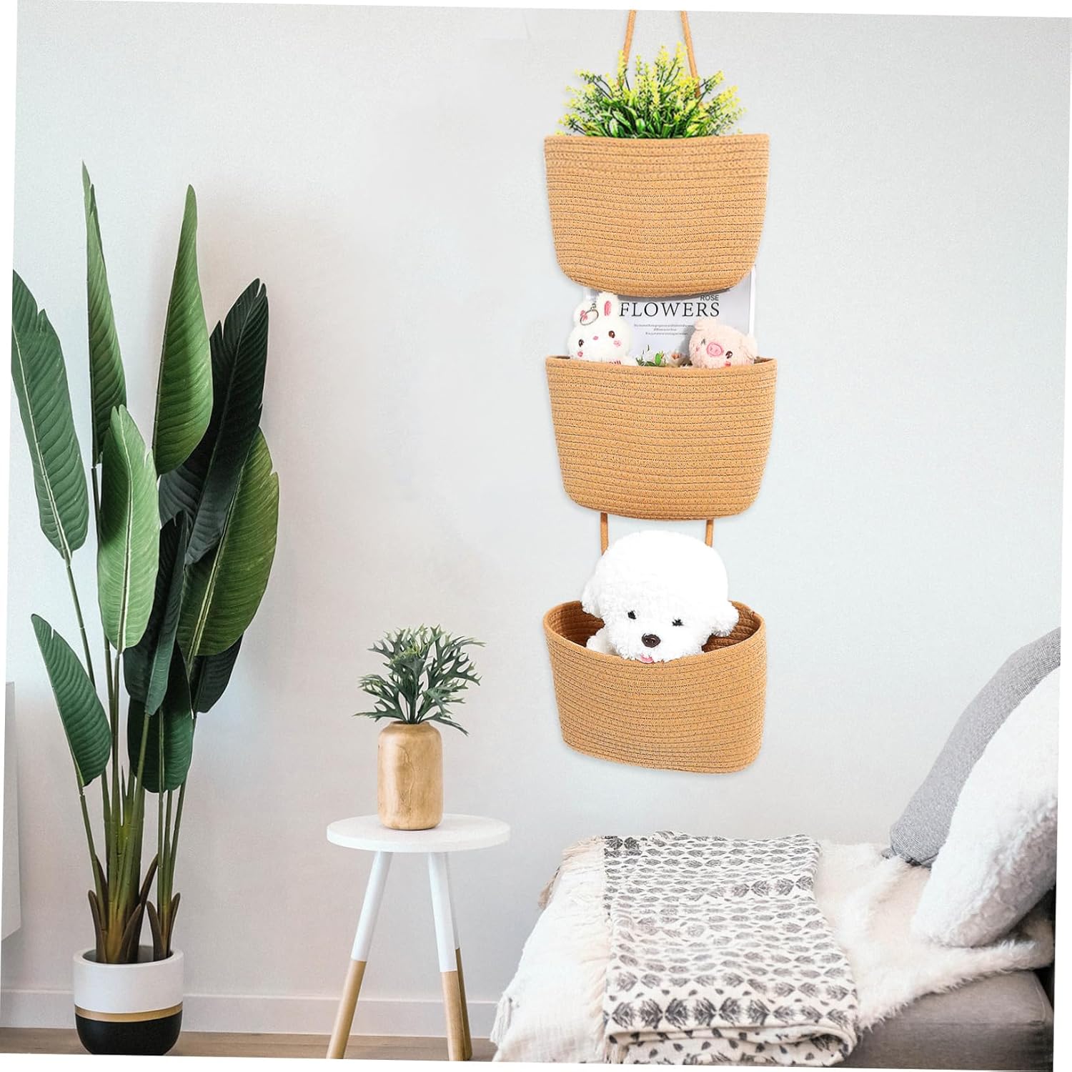 Package List 1 x Hanging Basket Characteristics - Organized Storage: The 3 tier hanging basket allows for organized storage, making easy to find and access items when needed Wall Basket. - Various Rooms: Suitable for kitchens, nurseries, bathrooms, and more, these hanging baskets meet the storage needs of different spaces Hanging Basket. - Easy Installation: These hanging baskets are easy to install on walls or doors, providing a convenient storage for any room Woven Baskets For Storage. -Material:Cotton Door Basket - Stylish and Functional: Combining style and functionality, these storage baskets the aesthetic appeal while providing practical storage Door Organizer. -Color:Brown Hanging Wall Basket - Sturdy Construction: Made from cotton materials, these wall baskets are built to withstand daily use and maintain their time Wall Storage. -Size:28.00X27.00X6.00cm/11.00X10.61X2.36in Hanging Rope Baskets For WallGoods InformationFabric Storage Organizer Made from strong cotton rope material, it is built to last and withstand daily use without loosening.Hanging Basket From the kitchen to the bathroom, and even the nursery, our Wall Hanging Basket is versatile and can store a variety of items.Wall Baskets Choose convenience and functionality with our Wall Hanging Basket