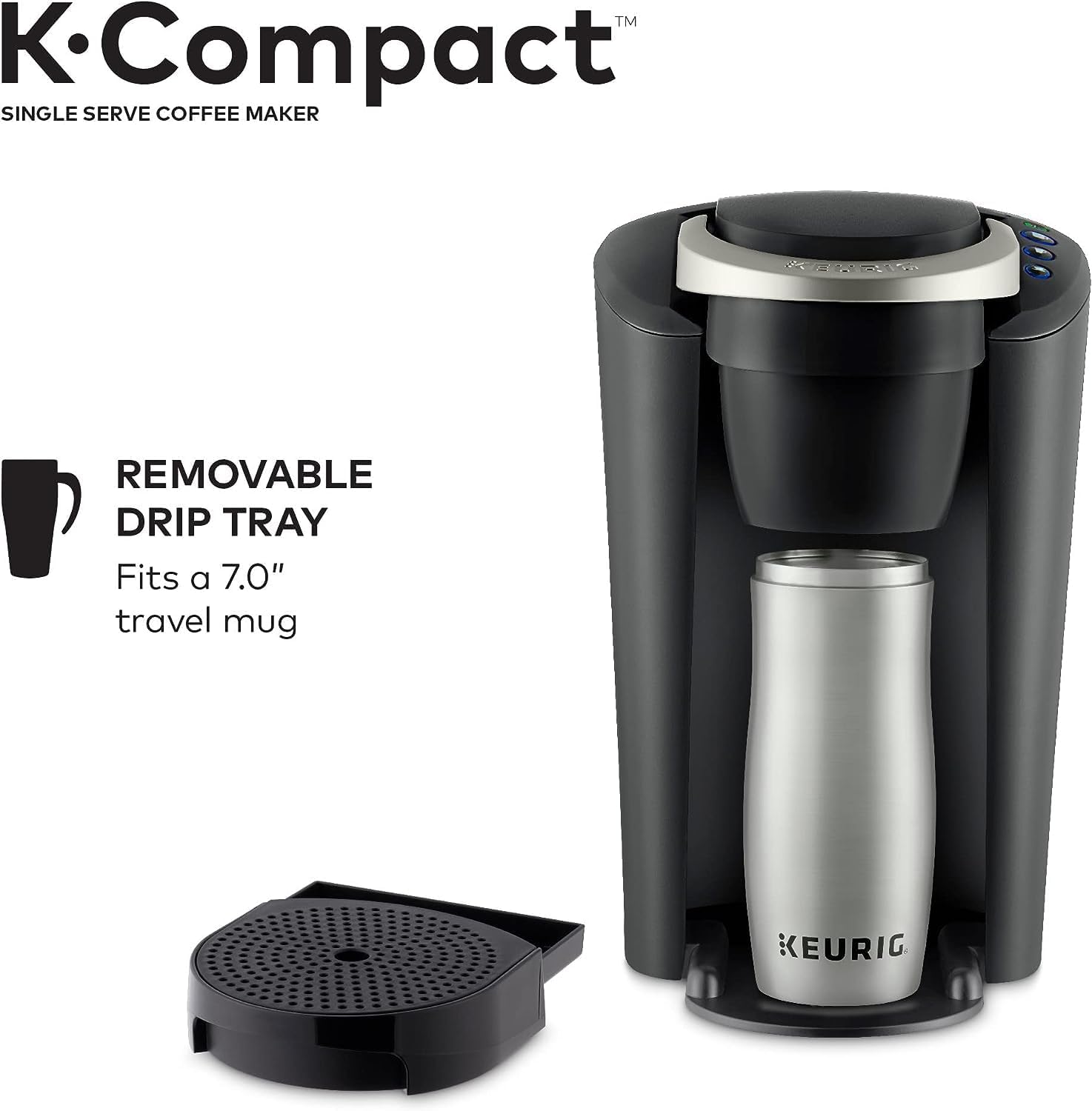 Space saving. Crowd-pleasing. The slender and stylish Keurig k-compact brewer is our slimmest removable reservoir Coffee maker ever, but still delivers the delicious taste AND unparalleled convenience that the Keurig brand is known for. Designed to leave the smallest footprint possible, The Keurig k-compact brewer is just over 8 wide, leaving you plenty of space on your countertop without sacrificing a thing. Brew 6, 8, or 10 oz. Of your favorite beverages in under a minute. Choose from hundreds of delicious K-Cup Pod varieties Coffee, tea, hot cocoa, Iced beverages, and more and enjoy a perfect cup, every time. Or brew your own ground Coffee with the Keurig universal My K-Cup reusable coffee filter (Not included). The new Smart start feature heats and then brews in one simple process for even more convenience. The k-compact brewer has a removable drip tray to accommodate travel mugs, and its 36 oz. Removable water reservoir allows you to brew multiple Cups before refilling.