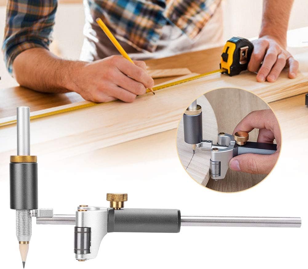 [MATERIALS] Made of aluminum alloy and stainless steel for durability and long service life. [ACCURATE MEASUREMENTS] Easy to use and measure, providing high accuracy and professional results. [VERSATILE USE] Can accommodate pens of different sizes, suitable for various materials like wood, ceramics, iron and acrylic. [COMPLETE TOOL SET] The all-inclusive kit allows DIY for enthusiasts. [PORTABLE DESIGN] Practical, high-performance tool with compact size for easy carrying and storage. Specifications: Item Type: Linear Arc Tracing Tool Model No.: MG0-000- Measuring range: approx. 13 cm/5.1 inches. Accuracy: mm Material: aluminum alloy + stainless steel Size: approx. 79 mm/3.1 inches. 220 mm/8.7 inches. Package List: 1 x Scribe. 1 x stand. 2 x pens. 1 x spring. Note: