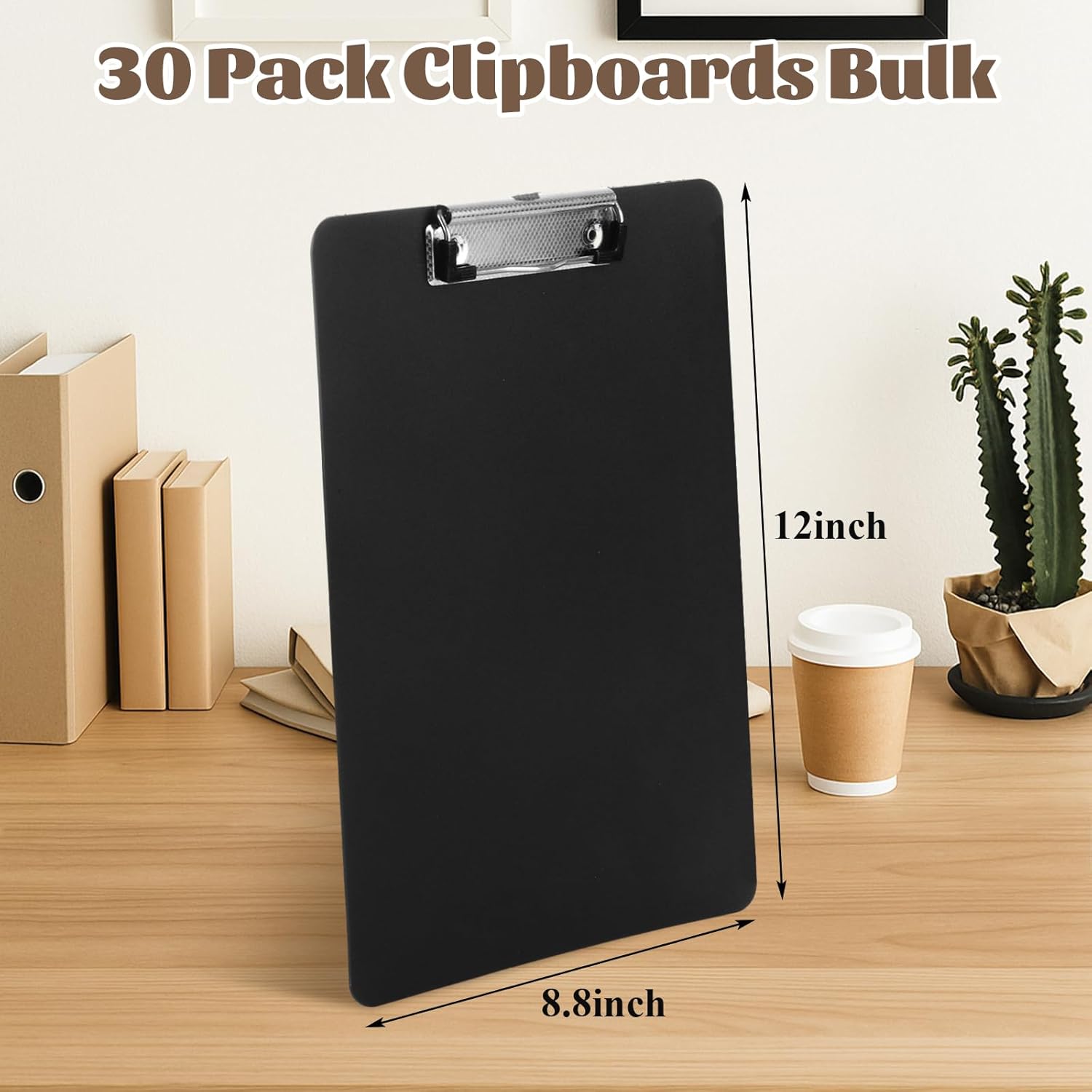 MIVIDE 30 Pack Black Clipboards, Black Plastic Clipboards Bulk, Plastic Office Clipboard 12 x 8.7 Inch Size Clipboard for Classroom, Teacher, Home, Office Supply