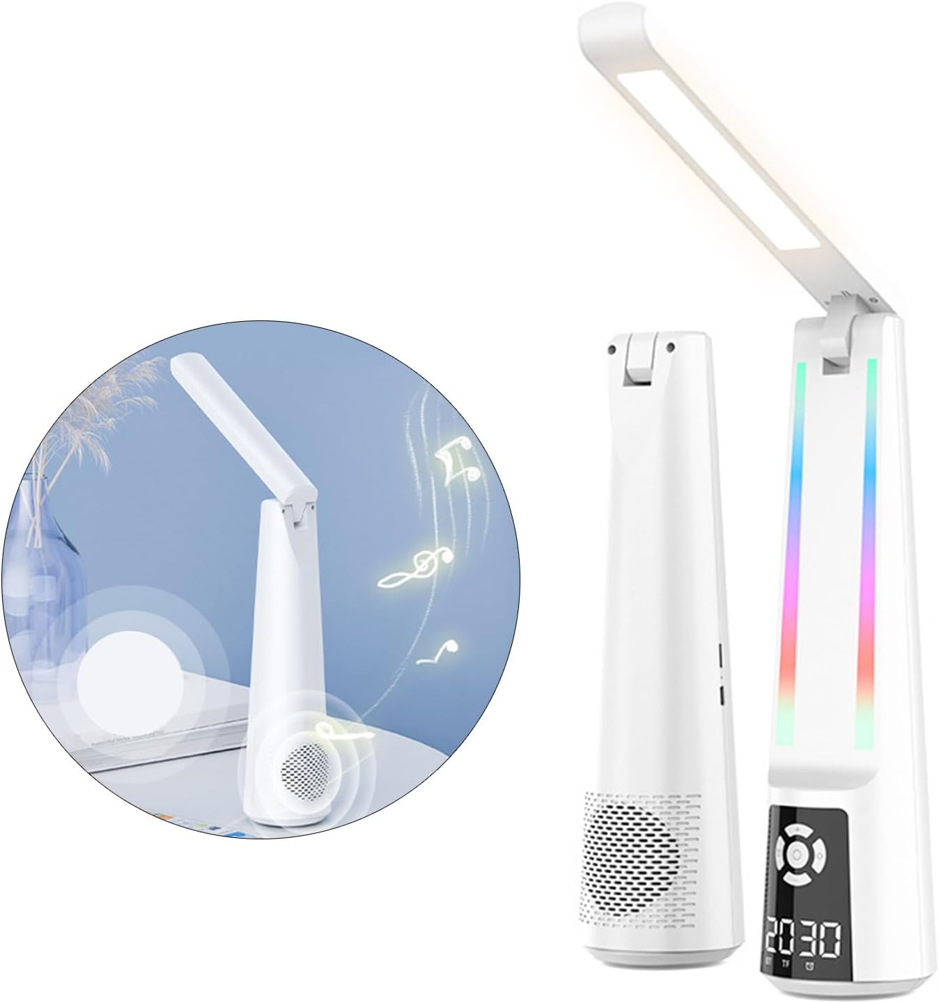 Multifunctional Dimmable Study Light Folding LED Desk Lamp with Alarm Clock & Speakers Portable Dormitory Night LightFeatures:This LED eye protections desk lamp features advanced optical design, providing soft and even lighting, reducing eye fatigue during long periods of study or work.The unique folding structure allows the desk lamp to easily adjust its angles to meet the lighting needs of different scenarios, such as reading, writing, or painting.Integrated digital display alarm clock function, for users to set time reminders and avoid missing important matters due to focus.Equipped with dazzling lighting effects and sound systems, providing a double enjoyment of visual and auditory senses.Suitable for students, office workers, and other people who need to use their eyes for a long time, helping it maintain efficiency at night.Specifications:Component: Packaging size: about 301x83x83mm/11.85x3.27x3.27inchPackage Includes:1pc Desk LampNote:Please allow 1-2cm errors due to manual measurement, make sure that you do not mind before you order. Due to the difference between different monitors, the picture may not reflect the actual color of the item.