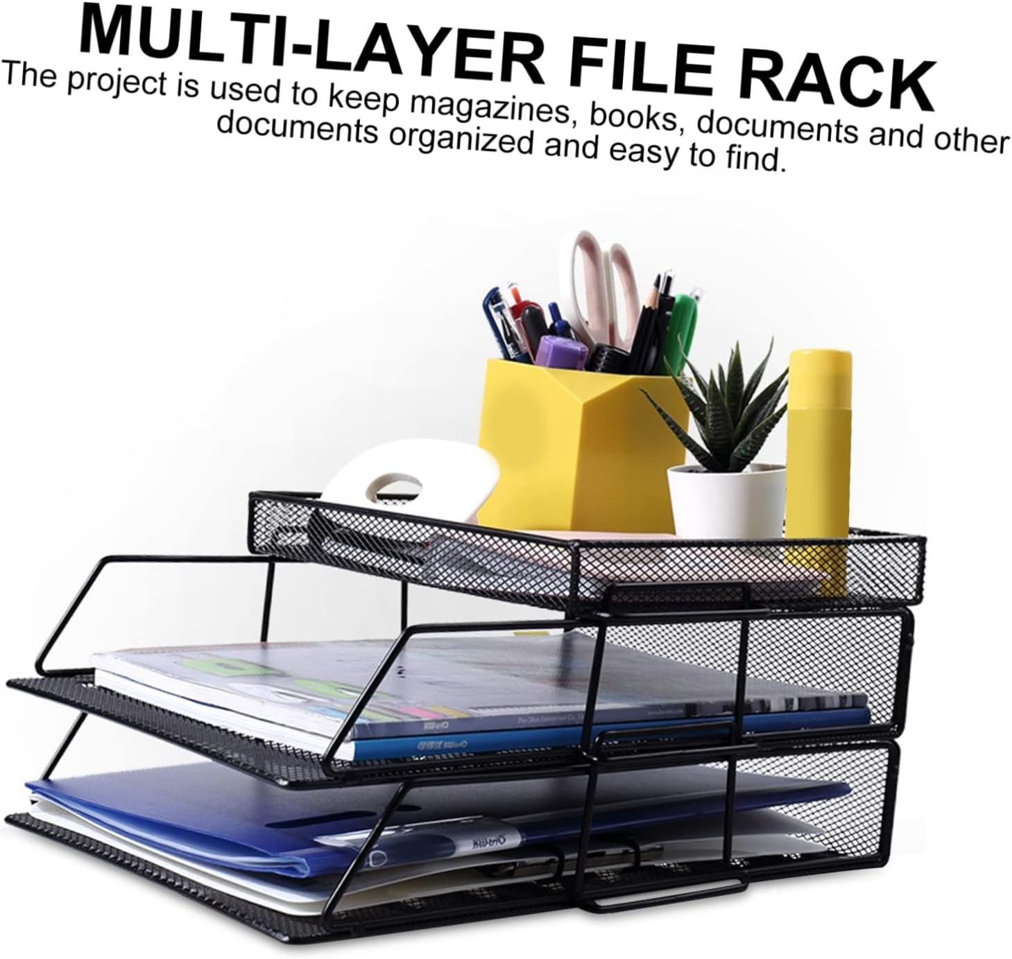 Package Include 1 x Storage Rack Characteristics -Color: storage -Size: About 35.00X25.50X15.00cm/13.76X10.02X5.89in storage office -Material: Metal file rack - Multi-layer design is perfect for organizing magazines, books, folders, and other documents desk file holder. - Easy to take out, fully office efficiency desktop storage. - Made of , for long-term use office document organizer tray. - Can be on shelves or counter tops or on your desk at work file holder. - With hollow mesh design, easy to quickly desk file organizer.Goods Descriptionstationery storage The item is used to keep magazines, books, files, and other documentation organized and easy to find with this convenient files rack.desk file holder Just set this stylish and convenient storage rack on your desk or shelf to keep your work space tidy, organized, and efficient