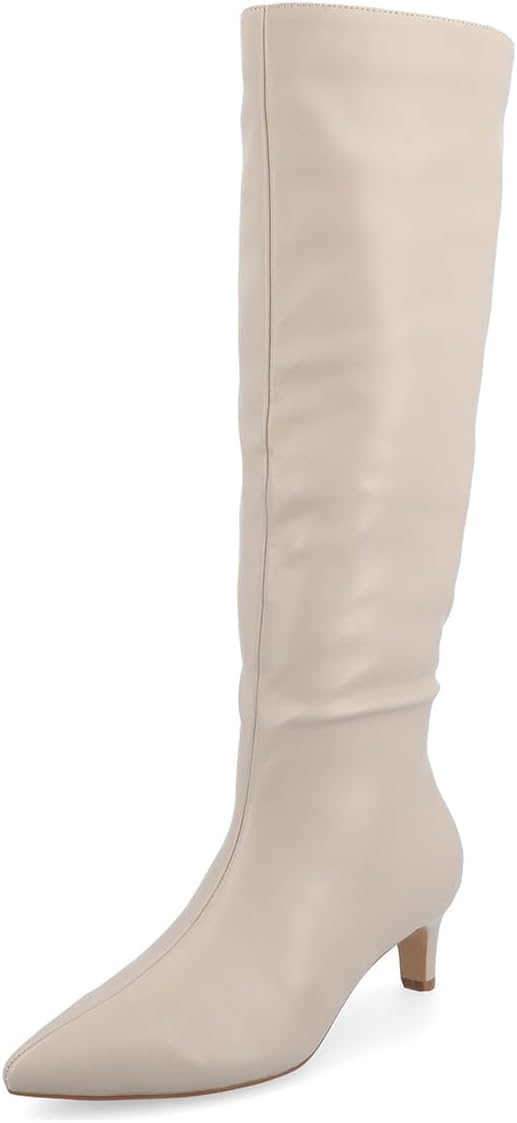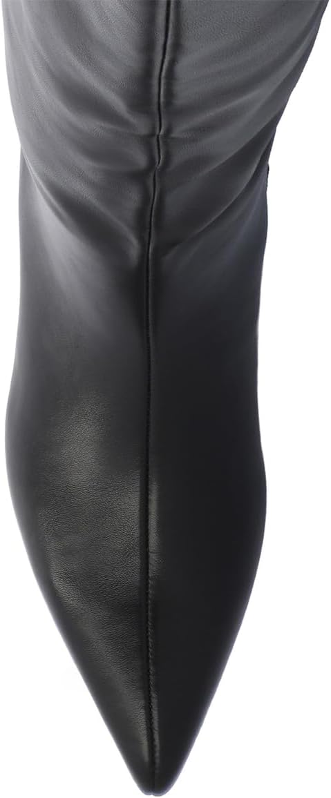 Pazzion Brand Introduction: Inspired by the world's current avant-garde trends, Pazzion footwear emphasizes contemporary aesthetics and all-encompassing classic silhouettes, while selecting high-quality materials. Meanwhile, Pazzion is committed to creating comfortable and fashionable shoes for the women in the new era, to show their characteristics: confidence, vitality, and always pursuing glamour transformation! Product Designs: 1. Shoe Heel and Height: Kitten heel, approx. 1.5-2 inches(4-5 cm) 2. Shoe Material: Women wide calves knee high boots, made of high-quality synthetic leather, non-slip rubber sole and breathable insole make your every step safe and stable. 3. Shoe Toe: Pointed Toe; Closed Toe 4. Shoe Closure: Zippers 5. Shoe Size Range: Size 4-16 (M) US available. For the most appropriate fitting, refer to the size chart image in the last picture. And if your feet are WIDE or THICK, please select one size larger. Customized Service: We have our factory and can realize any ideas that you have about your dream shoes, such as material, color, heel type, heel height, toe style, accessory, strap type, platform, etc. Warm Note: We will try our best to minimize color difference, but we still hope you understand the shoe color may be a little different between the actual product and the product picture due to the effect of the light and monitor resolution setting.