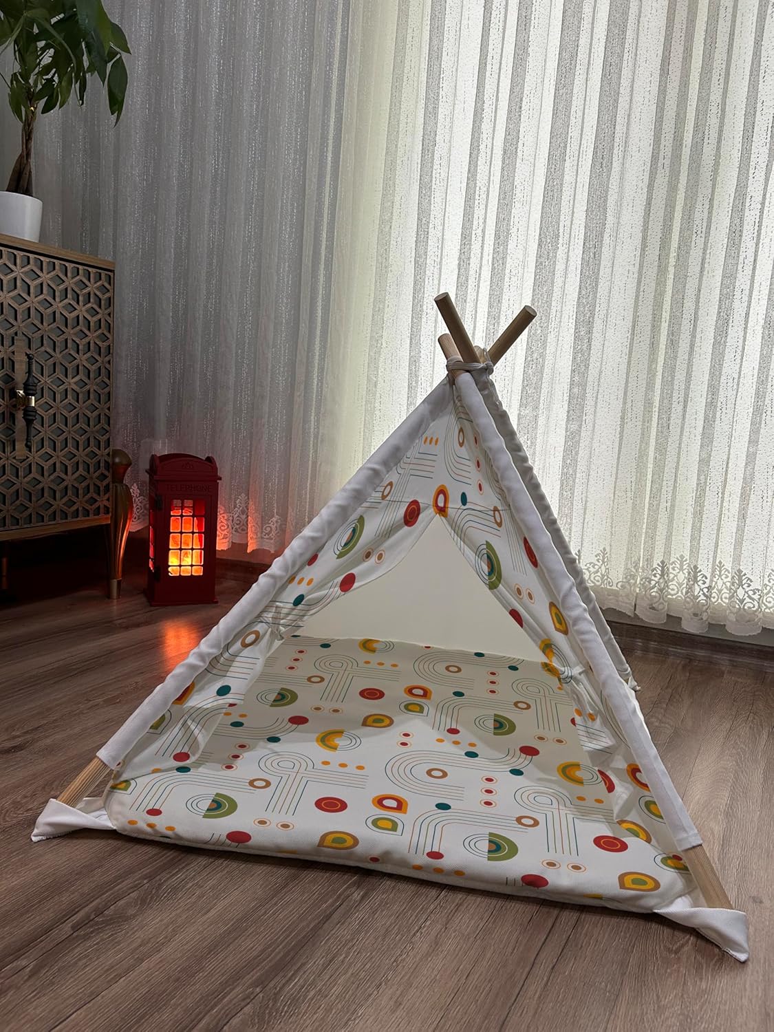 Create a cozy retreat for your pet with our stylish teepee. Our specially produced fabric has a soft texture. It can be wiped, washed at 30 degrees and easily ironed. Suitable for use with cats, dogs and rodents A special living space for your cute friend Your friend will not come out of the tent :)