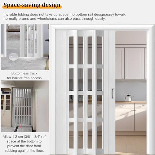 Transform your living space with our innovative Interior Folding Door, designed to enhance both aesthetics and functionality in modern homes. Crafted from high-quality aluminum alloy and acrylic, this door combines durable materials with sleek design to create a seamless transition between rooms and the outdoors. Its minimalist style is perfect for a variety of settings, from kitchens and bathrooms to bedrooms and living rooms, making it an ideal choice for both renovations and new constructions. Our no-drill installation process ensures that you can set up this sliding door quickly and easily without damaging your walls. The retractable design features an ultra-low track that not only saves space but also ensures smooth operation. With enhanced sealing capabilities, this door effectively reduces noise and helps maintain a comfortable indoor temperature, providing a peaceful environment. The lockable feature adds a layer of privacy, while the reinforced metal structure guarantees long-term durability. This practical solution is perfect for creating flexible separations between spaces, allowing you to adapt your home to your needs. Specifications: - Material: Aluminum + Acrylic - Door Panel Width: 16cm (6 1/4") - Panel Thickness: 1.25mm (1/16") - Width: 24" - 68" (61cm - 172cm) - Height: 80" (203cm) - Customized Size: Yes - Weight: Approximately 7kg/m² Features: - Opens from left to right or right to left for versatile use. - Functions as partition doors, folding doors, and more. - Equipped with hidden magnetic strips for strong magnetism and quick closure. - Silent bearing rollers facilitate smooth operation without jamming. - Upper track supports up to 200kg/440lbs, ensuring safety and stability. - Space-efficient design occupies only 10% of the space of a traditional door. Please Note: 1. Measure carefully to ensure the correct size. 2. Suitable for clean and smooth flat surfaces only. 3. Align the magnetic door post with the handle during installat...